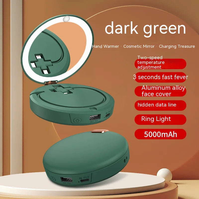 Stay warm and look flawless with this mini multi-function makeup mirror and hand warmer. Designed for convenience, this compact gadget features a high-definition mirror for quick touch-ups and a built-in hand warmer to keep your hands cozy in cold weather. Its sleek and portable design makes it perfect for carrying in your purse, ensuring you’re always prepared for beauty and warmth on the go. Ideal for travel, office, or daily use, this stylish accessory is both practical and elegant.