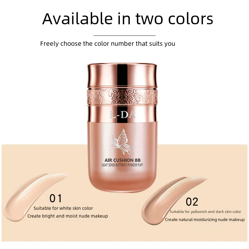 Discover the magic of flawless skin with our Yi Ruo Wing Butterfly Air Cushion BB Cream. This innovative makeup essential is designed to provide a stunning radiant finish while keeping your skin hydrated throughout the day. With its unique formulation, this BB cream not only offers essential moisture but also acts as a barrier against environmental factors, ensuring your makeup looks fresh and vibrant from morning till night.